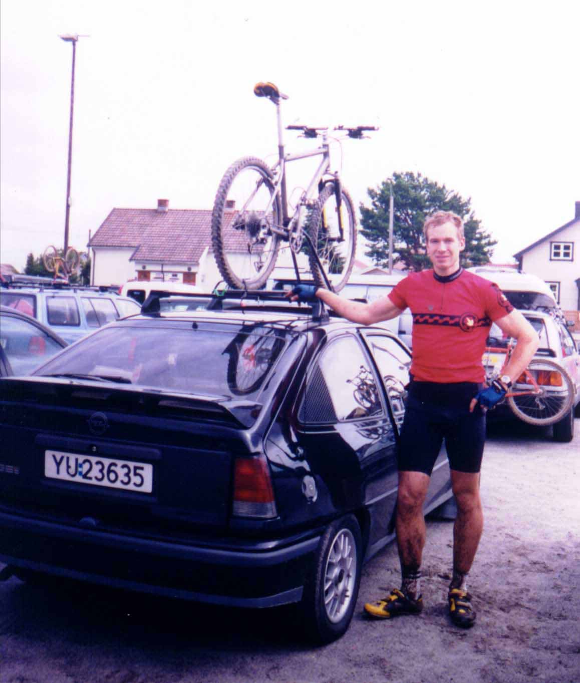 Jeg tenker dette er et vanvittig interessant bilde som du kommer til å studere i lang tid. Det er virkelig ikke hver dag man får anledningen til å studere et slikt prakteksemplar av en bil, og i hvertfall ikke et sådan kunstverk av en terrengsykkel. For DEG som VIRKELIG henger deg opp i dette og sannsynligvis vil komme til å lagre dette bildet som pausebilde på pc'en, så kan jeg faktisk fortelle deg at bildet er tatt i Larvik (Farrisrunden '98),